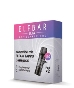 Passende Leer Pods für das Elfa Pod-System von Elfbar. Die Pods kommen mit einem Widerstand von 1,1 Ohm. Ausgeliefert werden die Elfa Leer Pods in einem praktischen 2er-Pack.
