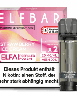 Passende Prefilled Pods für das Elfa Pod-System von Elfbar. Die Pods sind vorbefüllt mit 2 ml Liquid mit einem Nikotingehalt von 20 mg/ml. Erhältlich ist der Prefilled Pod für die Elfa in unterschiedlichen Geschmacksrichtungen. Hier ist mit Sicherheit für jeden der passende Geschmack dabei. Ausgeliefert wird der Elfa Prefilled Pod in einem praktischen 2er-Pack.