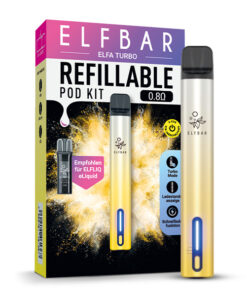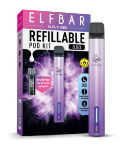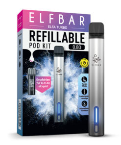 Mit dem Elfa Turbo Pod-System bringt Elfbar ein schlankes, ultraleichtes Vape Kit auf den Markt, das bequem in jede Tasche passt – perfekt für unterwegs! Dank der einfachen Handhabung ist es ideal für Anfänger und Umsteiger, die ein geschmacksintensives MTL (Mouth-to-Lung) Dampferlebnis suchen. In vier stylischen Farben erhältlich, bietet das Kit zwei Leistungsstufen, einen multifunktionalen LED-Strip, eine clevere 3-Zug An-/Abschaltung und ist kompatibel mit den Elfa Refillable Pods sowie den Prefilled-Pods der Elfa und Tappo Serien. So wird das Elfa Turbo Kit zu deinem vielseitigen Begleiter für intensiven Dampfgenuss.