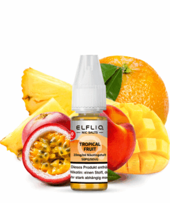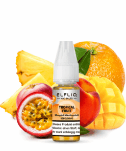 Mit dem ELFLIQ – Tropical Fruit Nikotinsalz erleben Sie den intensiven Geschmack tropischer Früchte, der beim Dampfen die Aromen von Mango, Ananas, Orange, Pfirsich und Maracuja vereint. Ein fruchtiger Genuss, der das Gefühl von Sommer und tropischen Stränden vermittelt. 🍍🍑🍊