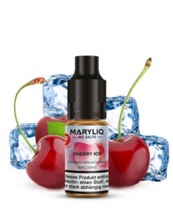 MARYLIQ – Cherry Ice Nikotinsalz überzeugt mit einem süßen Kirschgeschmack und einem frischen Abgang – perfekt für alle, die fruchtige Aromen mit dezenter Kühle lieben. 🍒❄️