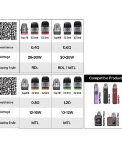 Die fest integrierten Mesh Coils ermöglichen eine gleichmäßige Verdampfung und vollen Geschmack – ganz ohne manuelles Coilwechseln. Je nach Dampfvorliebe sind die Pods in drei Varianten erhältlich: